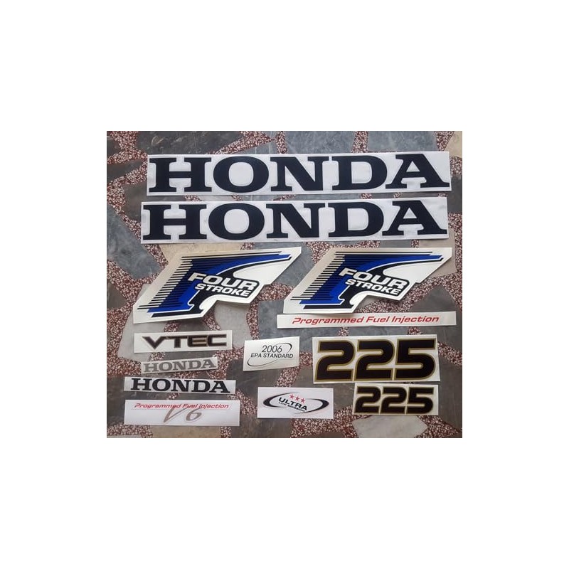 Aftermarket replacement decals set made to fit Honda outboard. Digitally printed on polymeric foil and laminated - Resistant to heat, cold, moisture, oil, UV rays. This is not an OEM decal - this is reproduction, similar to the original. May differ from original in color, size or shape. Logos are copyrighted by their respective owners.