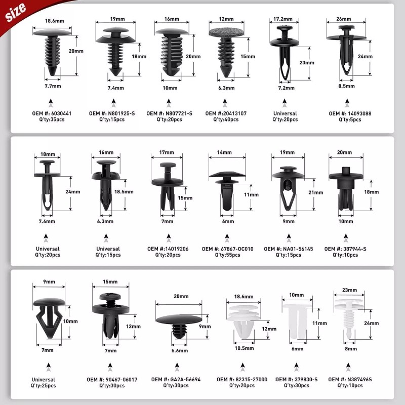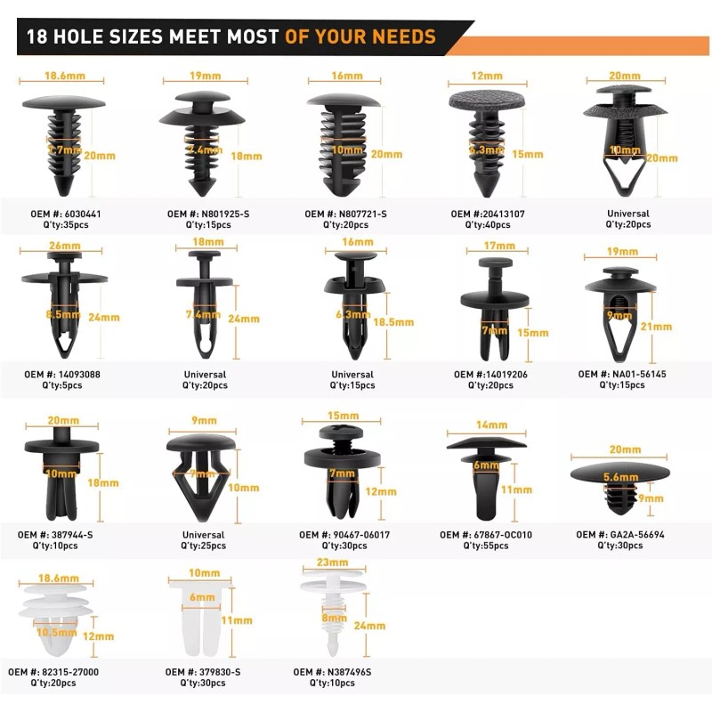 3. Replaces Factory Push Pin Rivets On Many Brands Of Vehicles Such As for Volvo, BMW, GM, Ford, Toyota, Honda, Nissan, Mazda, Chrysler, Volkswagen, Mercedes Benz And Audi.