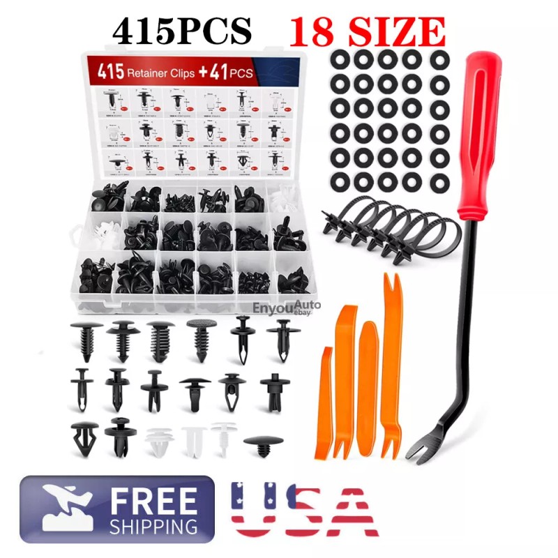 415Pcs Bumper Clips Retainer Auto Car Rivets Fastener Fender Push Pin Trim