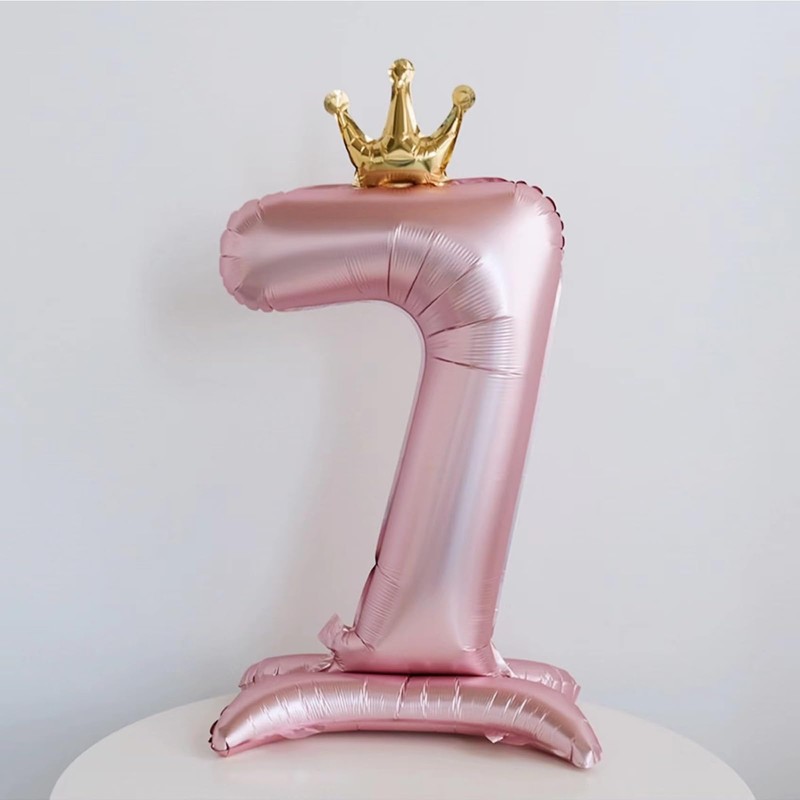 42 Inch Standing Pink Number 7 Balloons Wit Crown, 7th Birthday Balloons for Girls, 7th Birthday Party Decoration Supplies, Happy Birthday Balloons. (Pink 7)