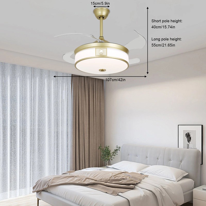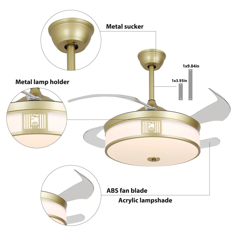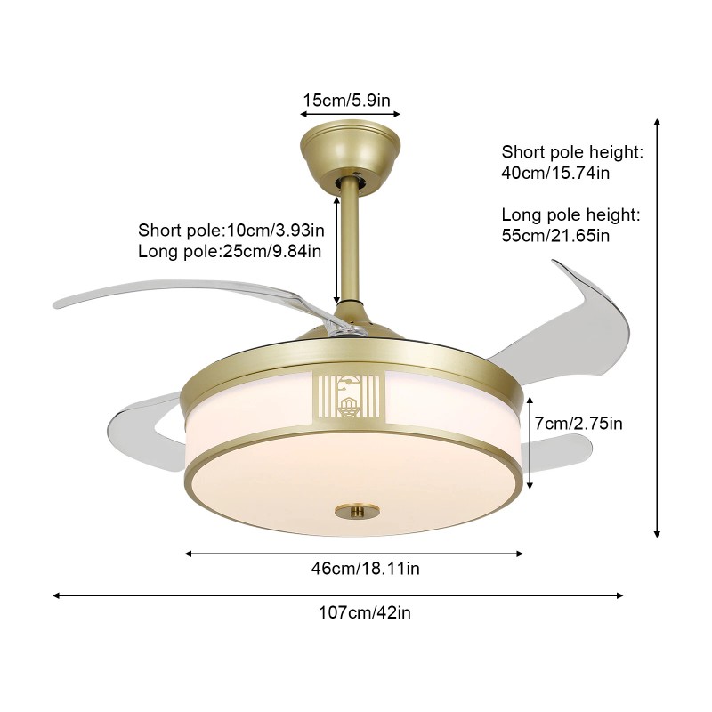 42 inches Modern Ceiling Fan Tri-color temperature LED Light with Remote Control