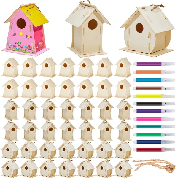42 Sets DIY Birdhouse Kit to Build and Paint, Include Unfinished Wooden Bird ...