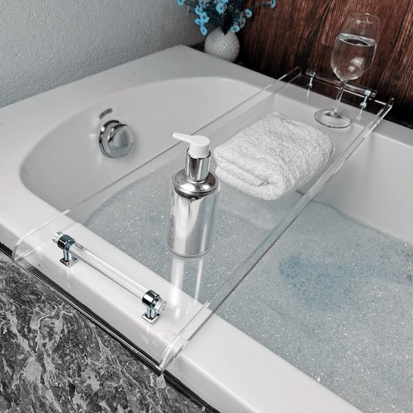 42" transaprent Bathtub Caddy with Silver Handle for Luxury Bathroom