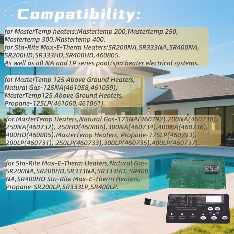 42002-0007S Control Board Kit Replacement for Pentair MasterTemp Sta-Rite Max-E-Therm Most NA and LP Series Pool & SPA Heater Electrical Systems, with 472610Z Switch Membrane Pad Replace# 461105