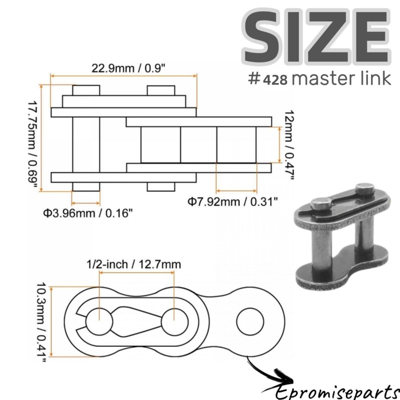 428 Chain Master Link Roller Chain Connecting Links for Bike Bicycle Mini Karting Pit ATV Scooter #428 Master Connector Link, Heavy Duty-9PC (428 Master Link)