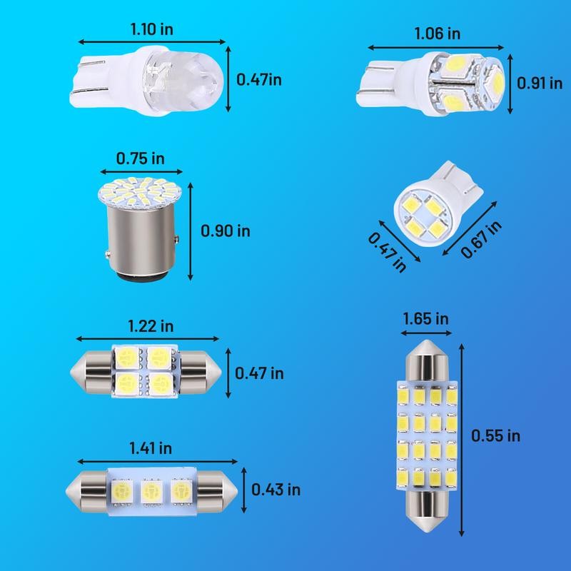 Wide Application CompatibilityWorks great as: Dome & Map Lights License Plate Lights Trunk & Compartment Lights Door Courtesy Lights Double-tip Reading Lights Cornering/Brake LightsWhat’s in the Box?