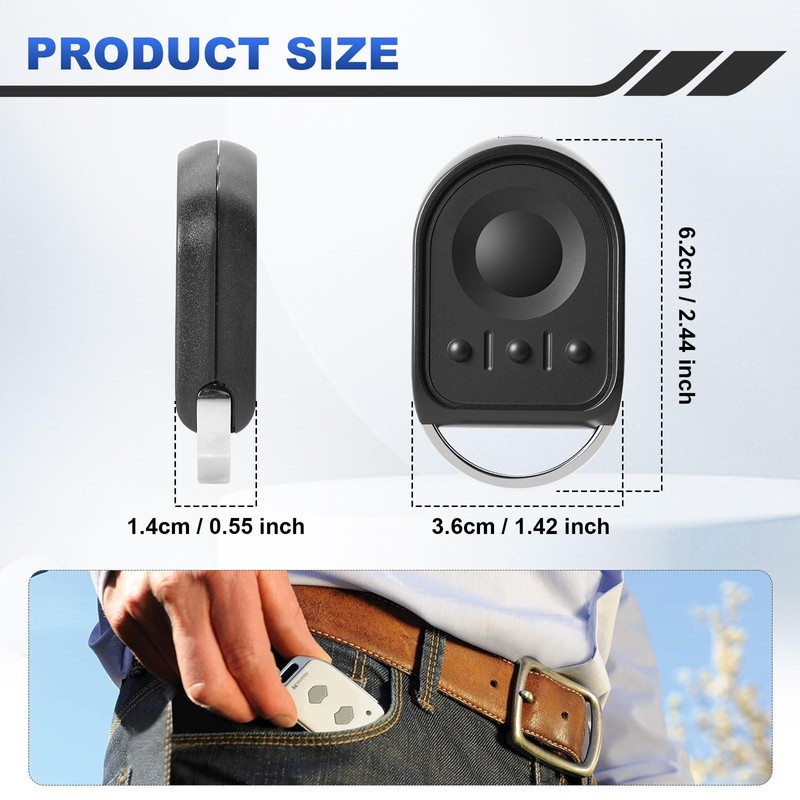 • 【Wide Range】The remote control's transmission current (8-10 mA) allows for a normal transmission distance of 10 to 50 meters. Compact, simple, and very stylish, it is easier to attach to a key ring, bag, or backpack without adding extra bulk.