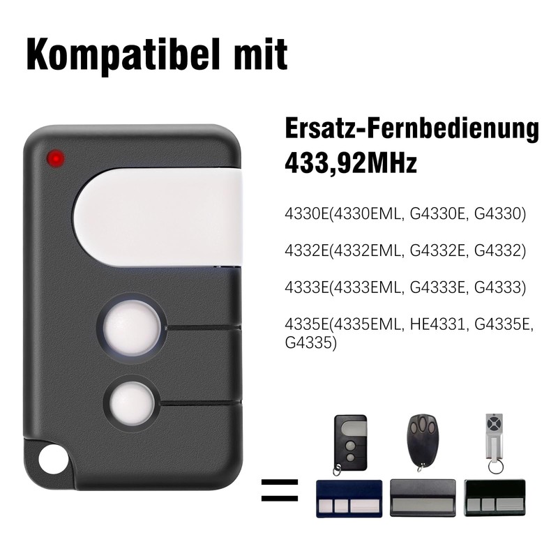- Compatibility This remote control garage door is compatible with 4330EML, G4330E, G4330, 4332EML, G4332E, G4332,4333EML, G4333E, G4333, 4335EML, HE4331, G4335E, G4335 remote control.