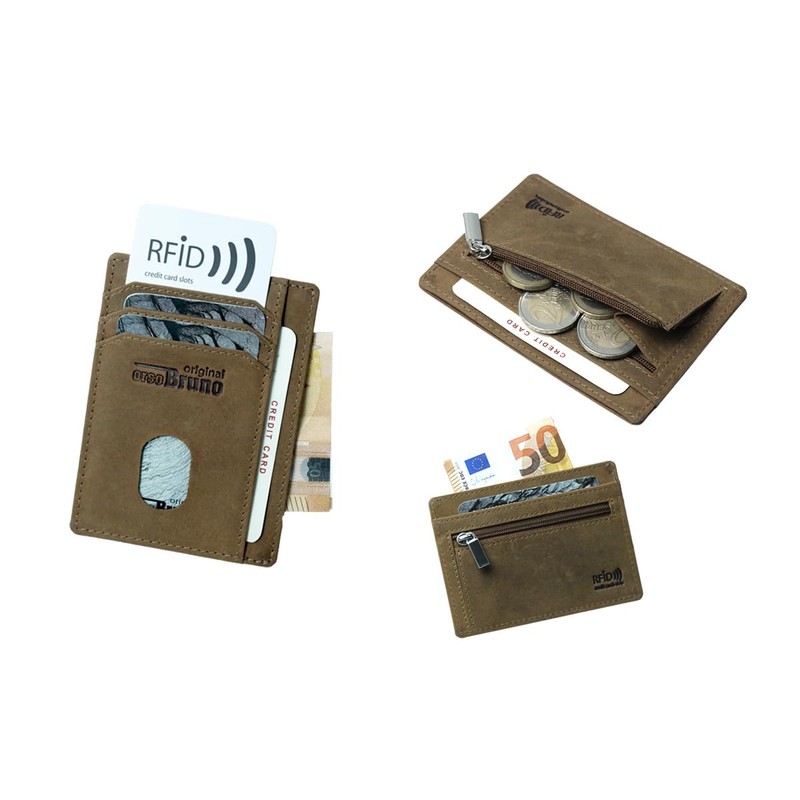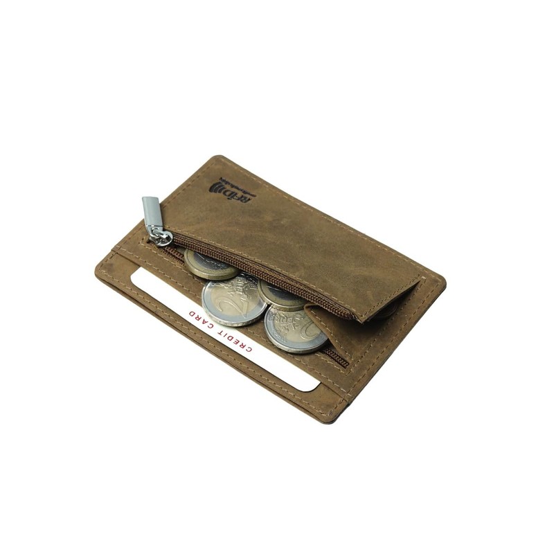 - Minimalist card holder for credit cards and banknotes + coins. It fits in any trouser pocket and does not dent them.