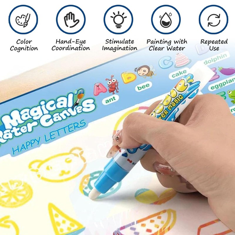 - Perfect for learning & play: Featuring a colourful fruit and alphabet design, this water drawing mat for kids encourages early learning. Kids can trace letters, numbers, and shapes, enhancing their hand-eye coordination, creativity, and cognitive skills while having fun.