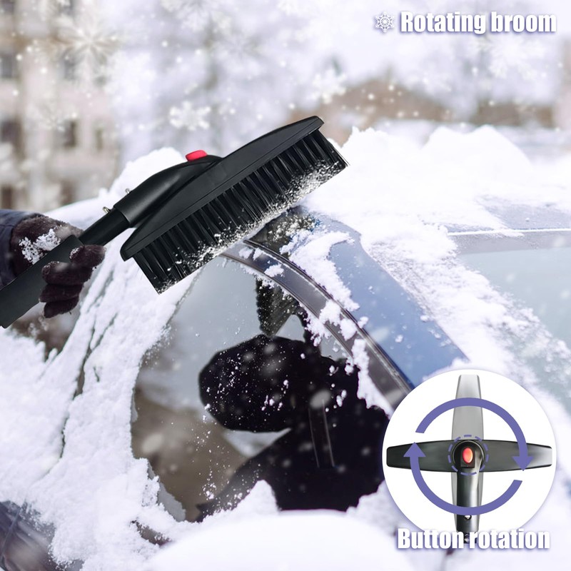 - Rotating brush head: Our snow shovel is equipped with 3 types of brush heads, which can be used to remove snow, ice, and frost with just one snow shovel. The brush head can rotate, making it easy to sweep away snow in dead corners and convenient for storage
