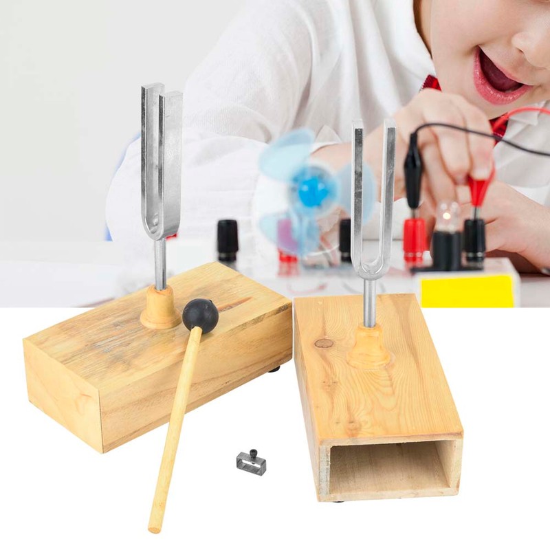 - The tuning fork set is used to demonstrate the resonance of sound in school.
