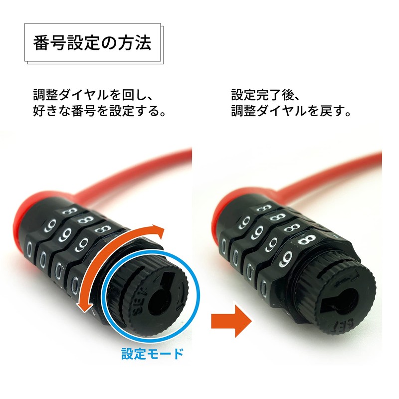 44160 Bicycle Key, Ine, Small My Dial Lock, 23.6 inches (60 cm), Red