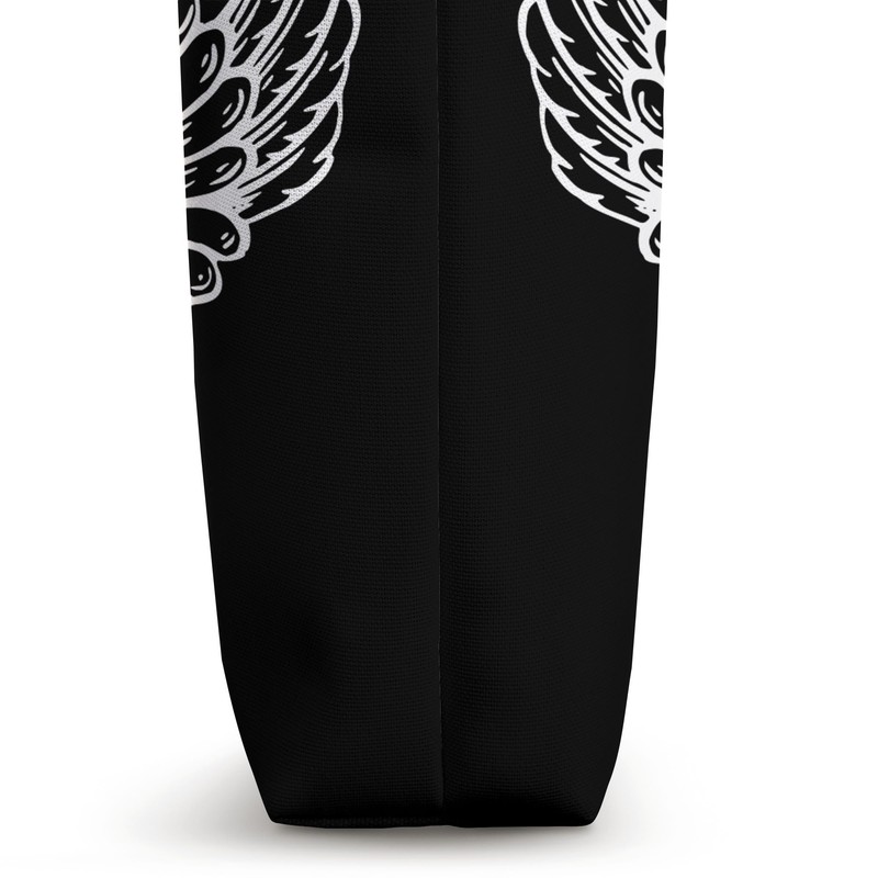 - 16” x 16” bag with two 14” long and 1” wide black cotton webbing strap handles.