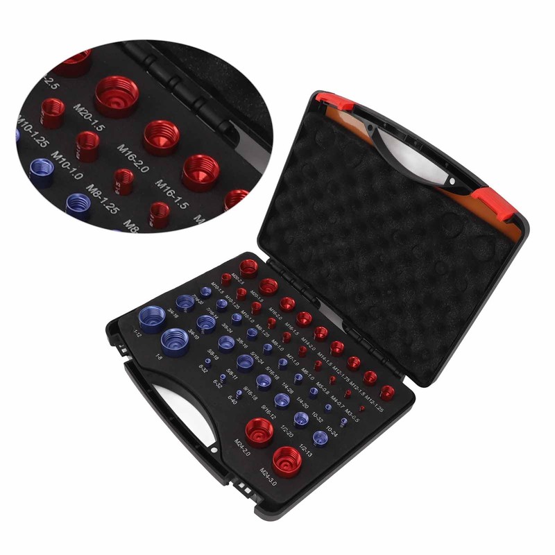 1. Upgraded Thread Checking Set: Every thread checker is inserted into well cut foam that holds them firmly in place to prevent them from bouncing around in the box, but not so tight that you can easily remove them. Easier to use than connected nut or thread checkers, because you no longer have to carry a whole bunch of gauges to measure individual screws or nuts and can reach any tight spot.