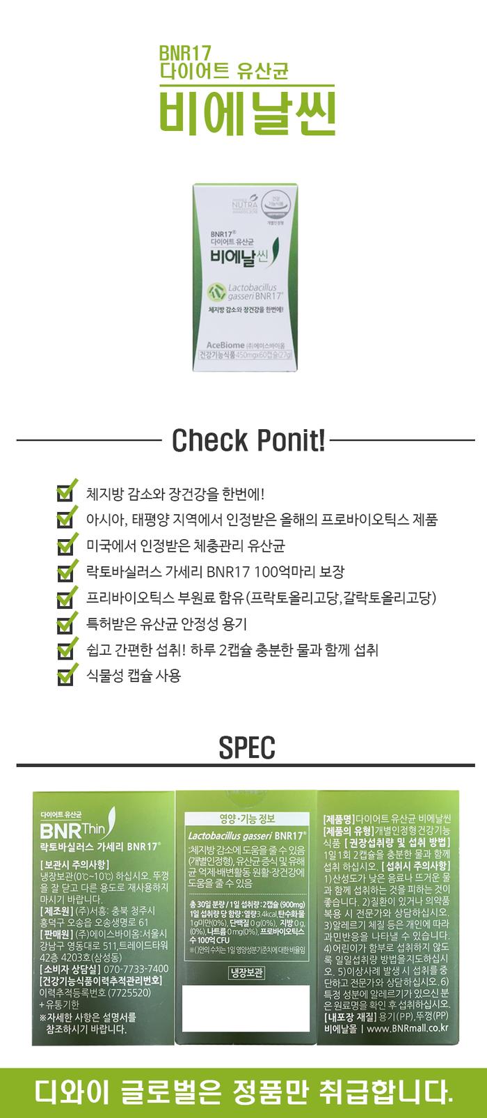 다이어트 유산균 비에날씬 450mg x 60캡슐 2개/DY, 450mg x 60캡슐