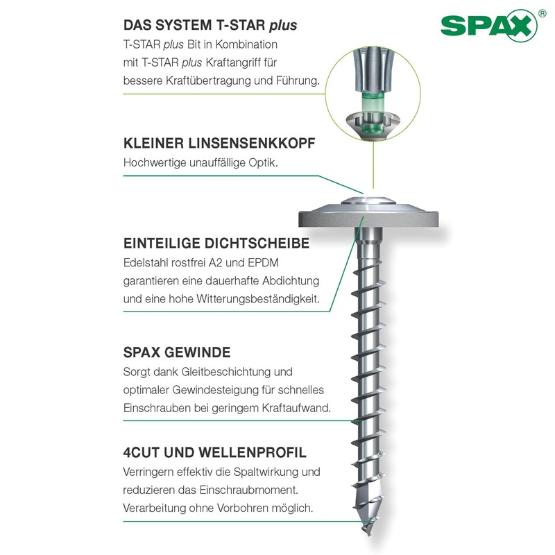 4587000450257 4.5 x 25 mm T-Star Plus T20 4Cut A2 Rustproof Stainless Steel Sealing Washer 15 mm Pack of 75