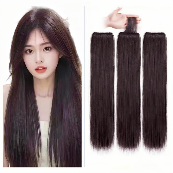 エクステ ロング ストレート45cm 3枚エクステ 襟足ウィッグ ストレート ロング クリップ付け自然 普段使い向け装着簡単 (ダークブラウン)