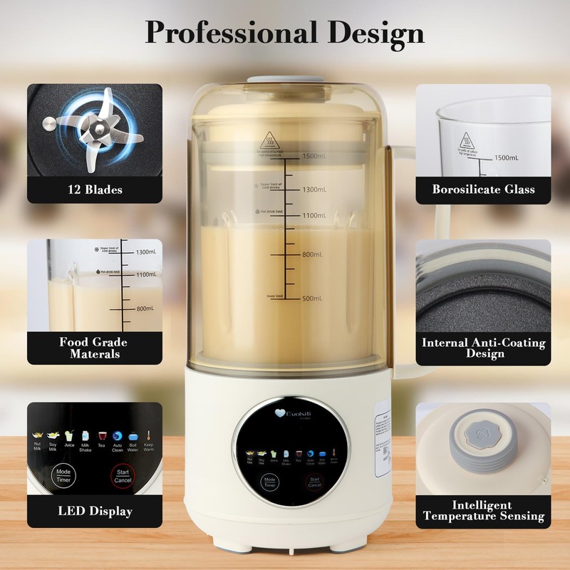 - 【Diy Many Types of Plant-based Milk】This multifunctional milk maker machine can skip the soaking process, suitable for making various plant-based milk, such as nut milk, soybean milk, milkshakes, fruit juice, oatmeal milk, cashew nut milk, coconut milk, etc.