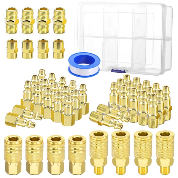 • 【Great Value Package】This kit contains 45 1/4-inch quick connect air fittings, including 4 female air fittings, 4 male air fittings, 14 male air plugs, 14 female air plugs, 4 hexagonal fittings, 4 hexagonal fittings, and 1 tape, which can almost meet your basic needs.