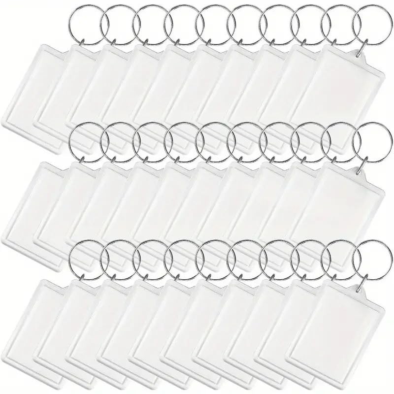 - [Size]A split ring has been attached to each double-sided blank picture keychain. The internal size of acrylic clear photo key rings with split rings is 45x70mm and the external size is 50x75mm. Insert friends, family, pets, or your favorite photos or messages inside the blank photo insert keychains to create your personalized keyring or keep them as a keepsake.