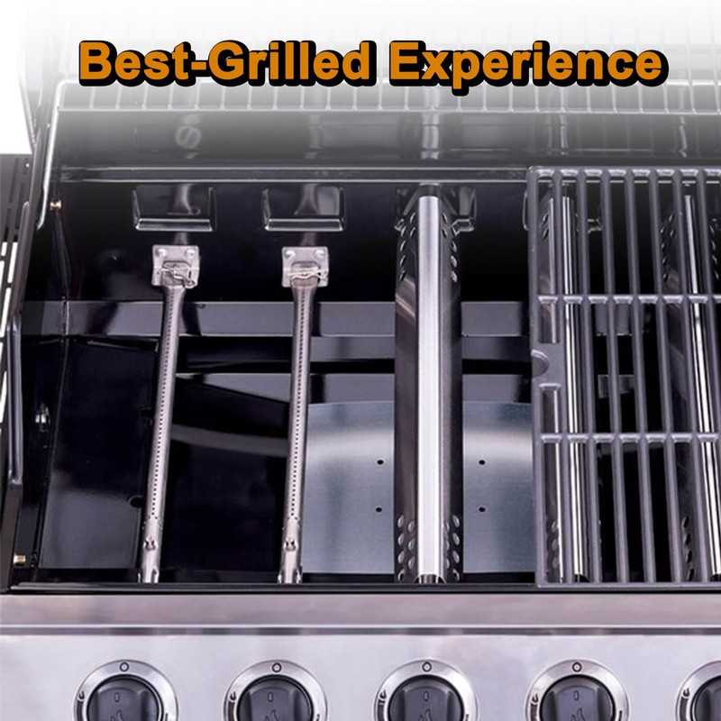 - 【Heat Transfer Evenly】 The charbroil gas grill replacement parts provide good heat retention and evenly heat, charbroil heat shield will protect the charbroil grill burner from oil droplets to avoid grease clogging the burner holes, allowing the charbroil burner tube product full and even flame. char-broil performance 6 burner gas grill replacement parts also returning the collected oil droplets by evaporating to increase smoky flavor to the food