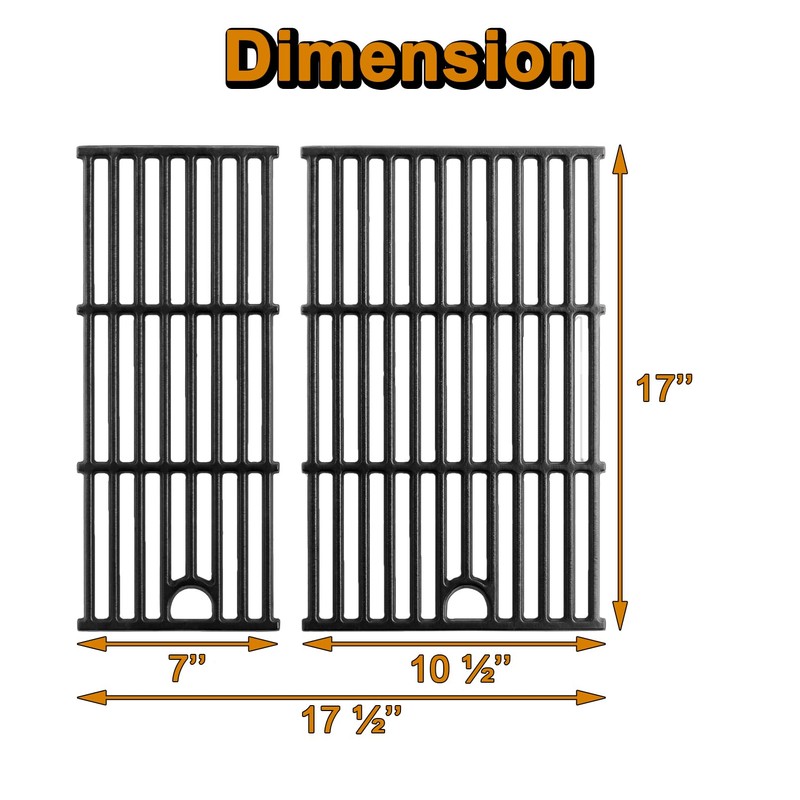- 【Dimension and Package】 10 1/2’’ x 17’’ per large charbroil grill grates, 7’’ x 17’’ per narrow charbroil cooking grate, Total 17 1/2’’ x 17’’ for 1 x large grate and 1 x narrow grates in 1 pack charbroil grill replacement parts (Please make sure the size and package is perfectly fit your charbroil grill parts)