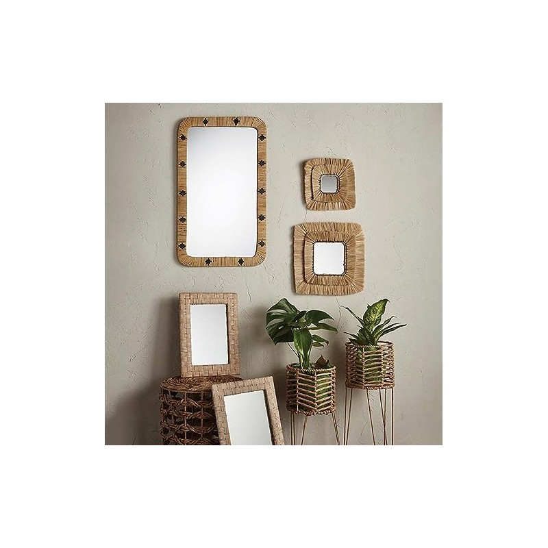 - WOVEN FRAMED MIRROR: Rectangular shape with a woven frame; transform your walls and reflect light into your space with this decorative wall mirror