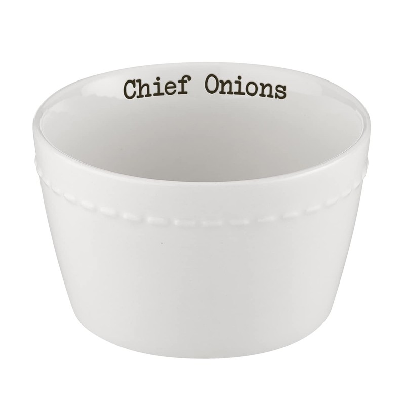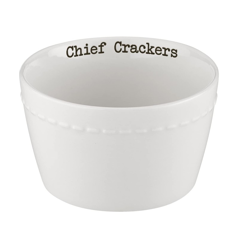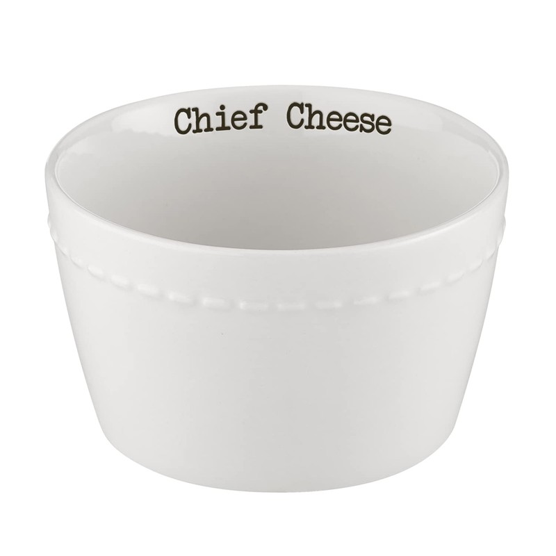 - DURABLE HIGH QUALITY CERAMIC: Reads "Chief Cheese," "Chief Crackers," and "Chief Onions" on the inside rim