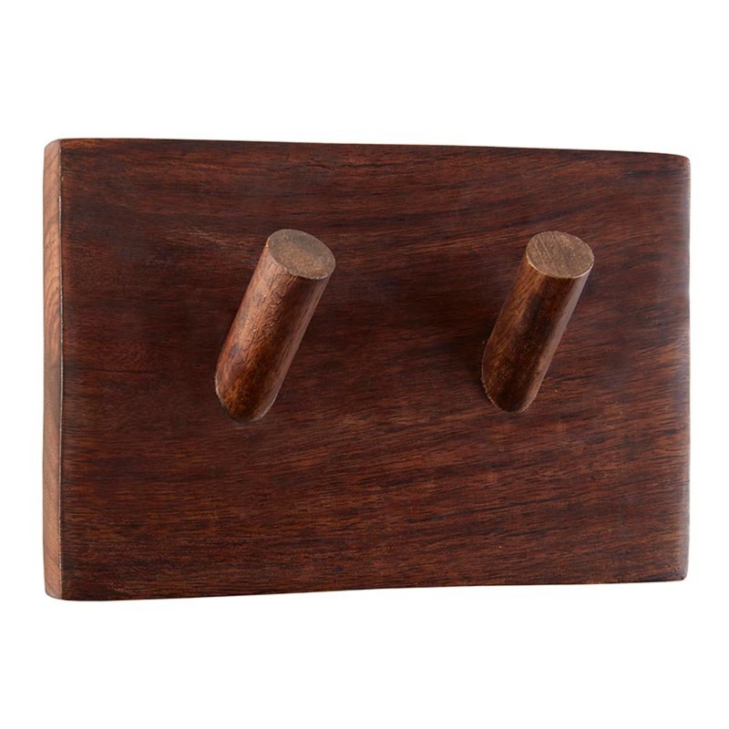 47th & Main Wall Mounted Hook Mango Wood 2-Peg Hook, 7.5" x 5", Walnut