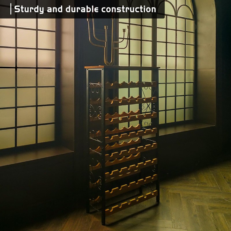 • SOLID WOOD TOP - The top board of this wine rack is have the high utilization, you can put your wine bottle, wine glass on it, you can even put some decoration, books or your corkscrew on it. The wine rack is made of the thickened wood and iron, which is stable and durable. The designed wave board will keep bottles stable and prevent wobbling, tilting, or falling.