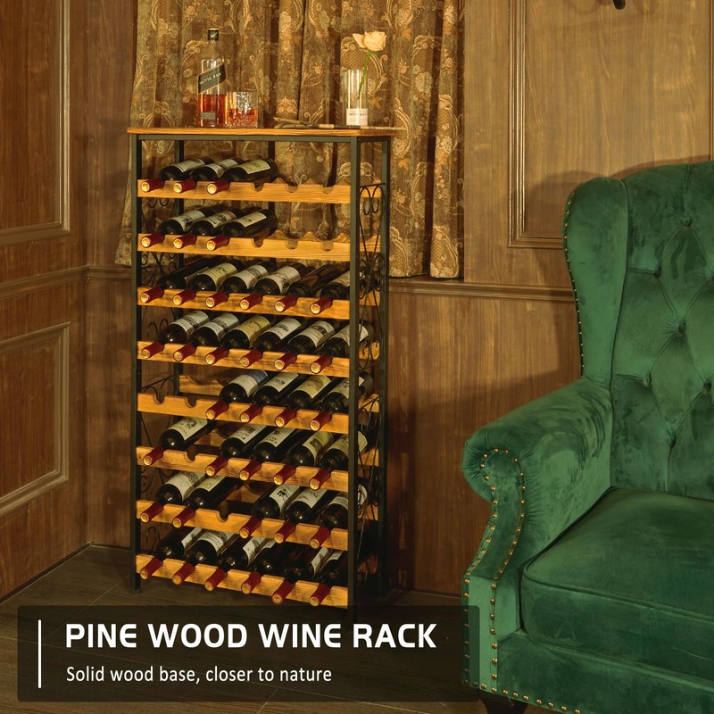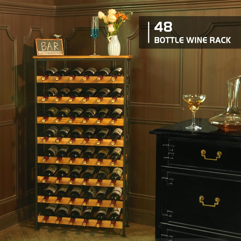 48 Bottles Floor Wine Rack with Wood Top, Freestanding Wine Bottle Organizer ...