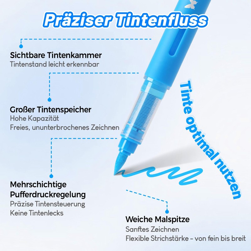 - Precise ink flow system: Experience zero ink waste thanks to intelligent flow technology that maximises pigment use and guarantees even, residue-free performance. The dynamic ink reservoir prevents build-up and ensures even ink flow across all surfaces.