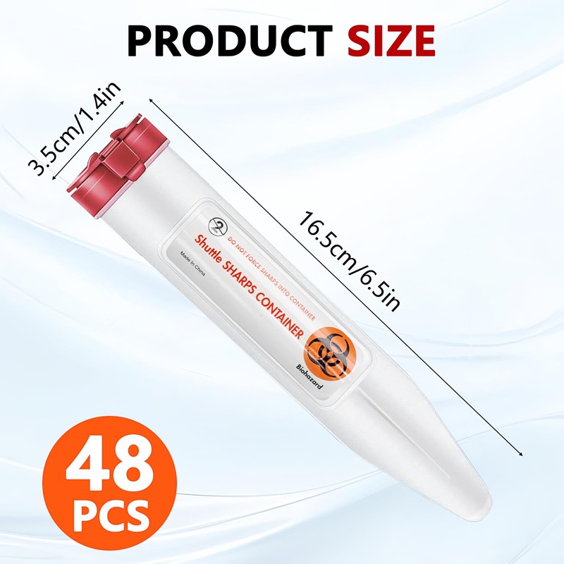 48 Count Portable Sharps Container, Travel Sharps Disposal Container, Transportable Small Single Use Sharps Container with Locking Mechanism for Needles (6.5 x 1.38 Inch)