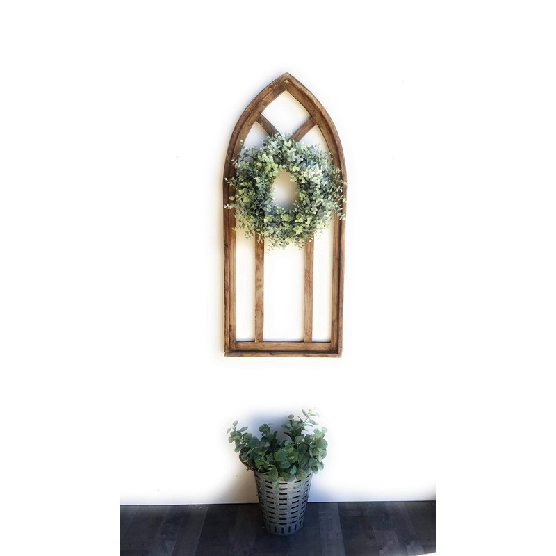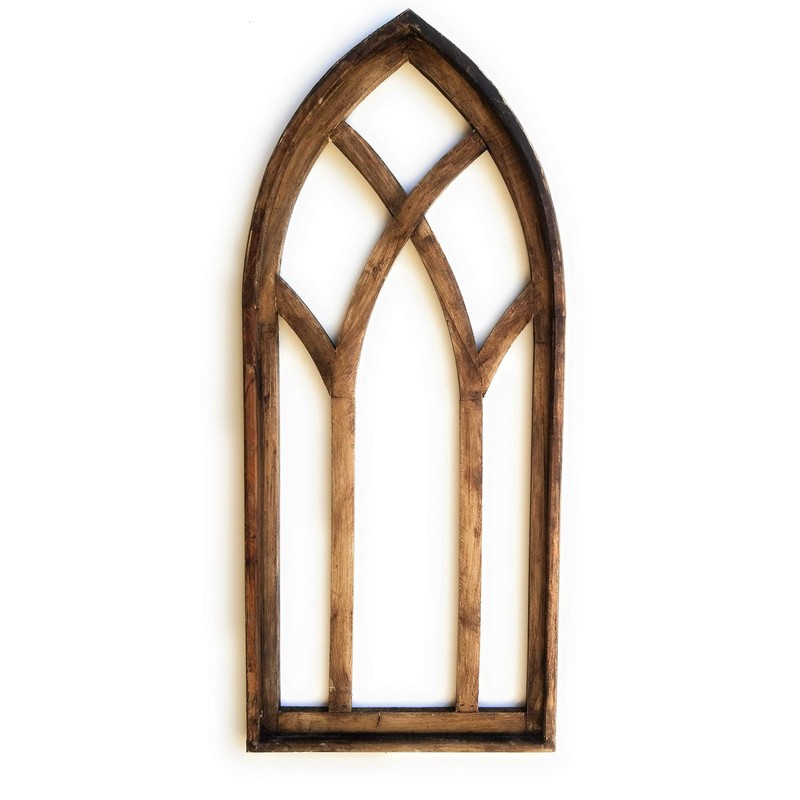 48" Farmhouse Wood Cathedral Window Arch Rustic Ash Brown- The Farmhouse Cathedral Window