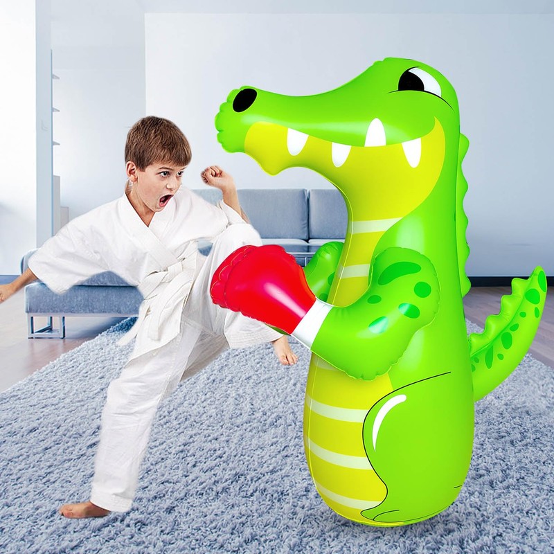 48 in Crocodile Punching Bag for Kids, Boys Punching Bag,Inflatable Dummy, Inflatable Punch Bag, De-Stress Boxing Bag for Kid.
