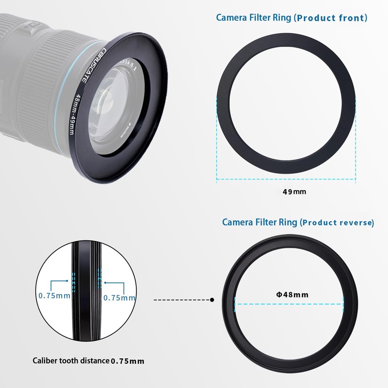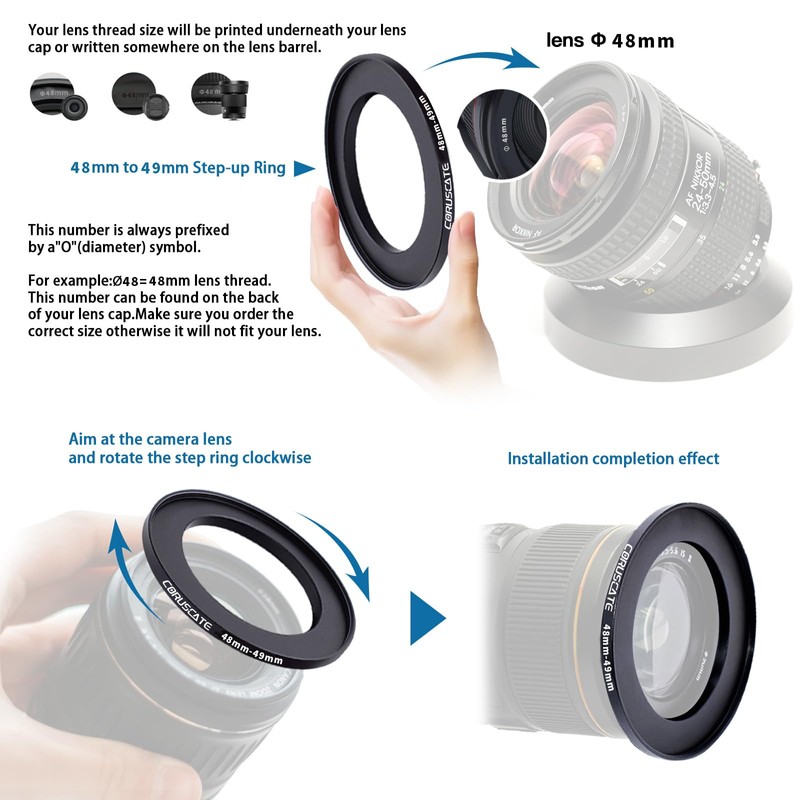 - Package includes: 1 x 48 mm - 49 mm camera filter ring + 1 x lens cleaning cloth + (original manufacturer package)