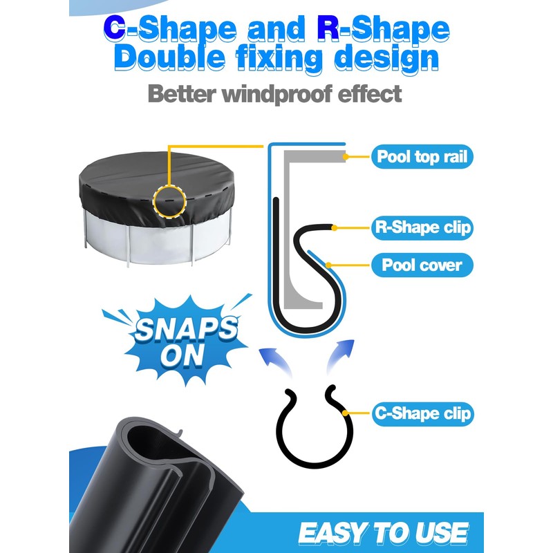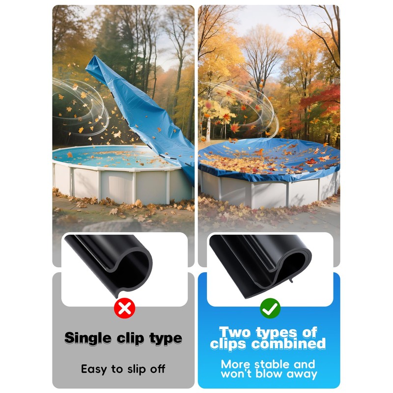 48 Pack Winter Pool Cover Clips for Above Ground Pools- 2 Shapes Pool Cover Clamps, 4.7 inch Wind Guard Clips for Steel Wall Swimming Pool Securing Cover, Black