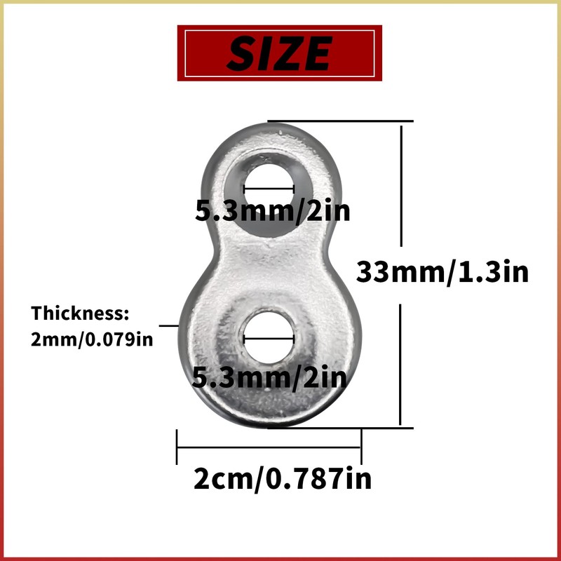 - SIZE - Total length 33.5mm/1.3in, thickness 2mm / 0.079in, aperture 5.5mm/2.16in, diameter of the smaller end 15.5mm/0.61in, diameter of the larger end 20mm / 0.79in, work with #6 flat head screws.