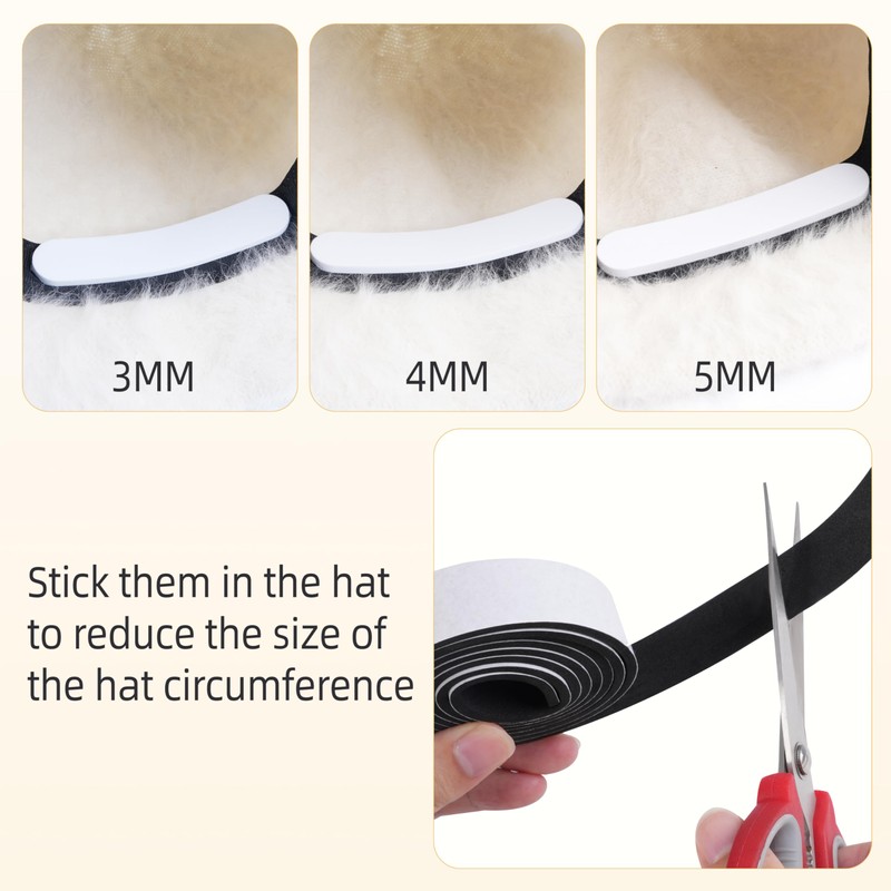 - Easy to Use: With adhesive on the back, the fitted hat size reducer can be directly stuck to the inside of the sweatband or sewn on for a secure fit. There is no need to worry about it falling off when wearing a hat. It can also be cut into different sizes and shapes to match various hats.