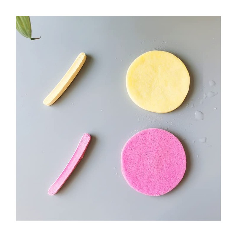 - Compressed facial sponge, made of quality fiber polymer sponge, with strong water absorption, after absorption becomes a round shape