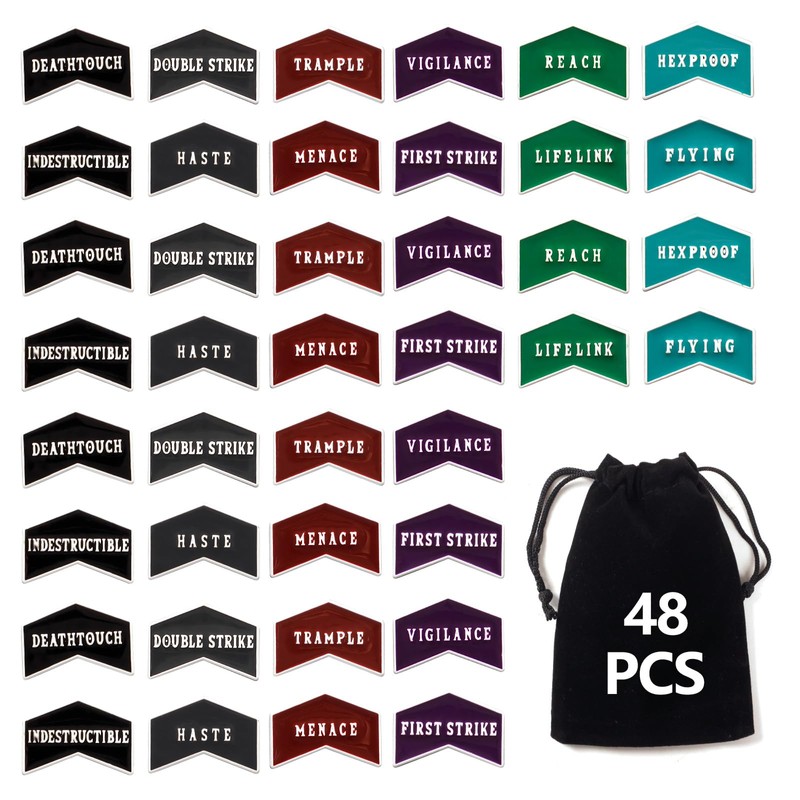 48 Pieces Magic Gathering Counters Tokens Antique Metal Buff MTG Keyword Counters Set Double Sided Compatible with MTG with Velvet Drawstring Pouch