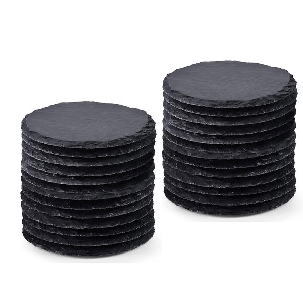 48 Pieces Slate Drink Coasters, 4 Inch Black Stone Coasters Bulk Cup Coaster Set with Anti-Scratch Bottom for Bar Kitchen Home Apartment, Square