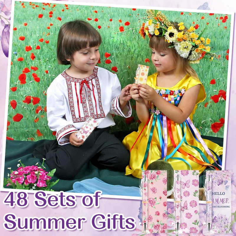48 Sets Summer Gifts Pens Bulk 48 Butterfly Flower Pens, 48 Butterfly Florals Greeting Cards and 48 Bags for Summer Party Favors Back to School Teacher Coworker Staff Office School Stationary Supply