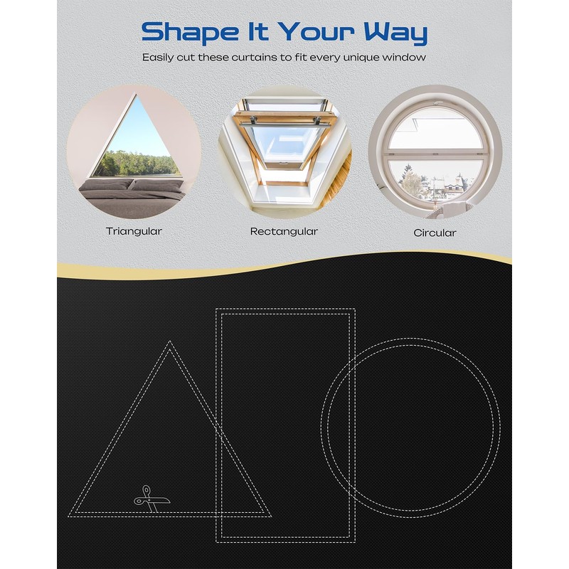 - Multiple Sizes Available - Offering a range of width and height specifications to precisely fit various window types, from small bathroom windows to standard bedroom windows and large living room floor-to-ceiling windows. It is recommended to choose a width 2–5 inches wider than the window and a length with a 1–2 inch drape. Combined with the hook-and-loop tapes to seal the edges, it achieves 100% light-proof shading