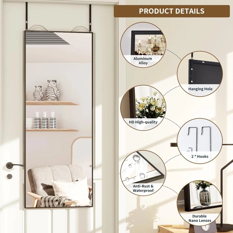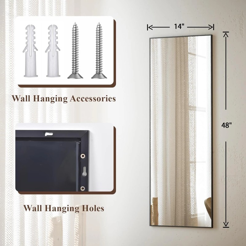 - Sturdy Build: This decorative mirror features a solid structure with an Aluminum Alloy frame, providing excellent support and protection for the mirror. It is durable enough for long-term use as a home decoration. The full body mirror hangs securely on doors or over doors