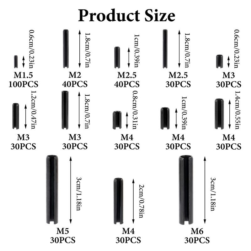 • Practical design: the hollow structure with preload is suitable as a threadless industrial metric/mechanical closure. Thanks to the storage box, you can sort and organise hollow split pins set. So it is more convenient to carry and quick to find.