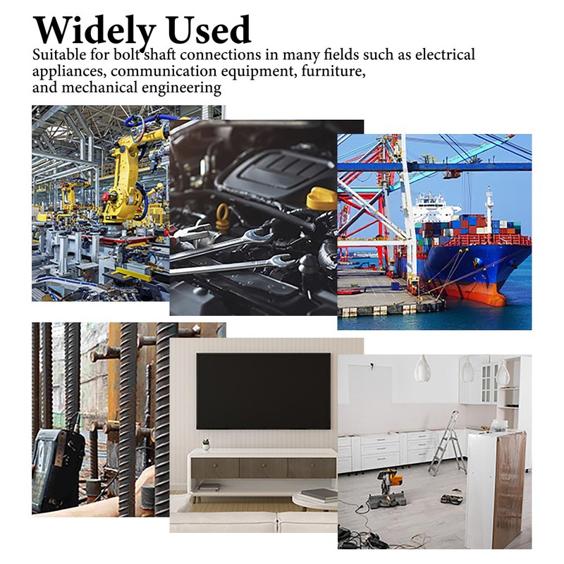 • Wide range of applications: suitable for electrical appliances, communication equipment, furniture, cars, motorcycles, mechanical equipment, construction machinery, bolt-shaft connections in mechanical engineering and many other fields.