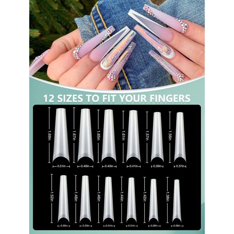 - Fácil de encontrar el tamaño adecuado: 12 tamaños diferentes de puntas de uñas largas y transparentes están prenumeradas del 1 al 12 individualmente para que puedas elegir el tamaño adecuado convenientemente. Y cada tamaño está separado de embalaje por una pequeña rejilla, que es conveniente para distinguir cuando lo usa. Tampoco lo arruinarás.