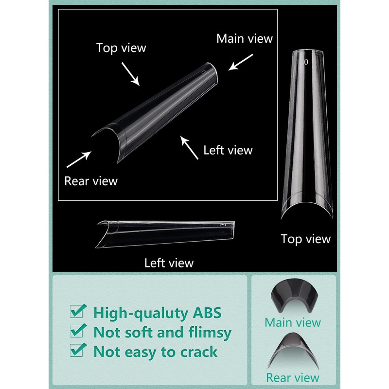 - Material ABS de alta calidad: la mitad de la cubierta de uñas largas están hechas con material ABS de alta calidad respetuoso con el medio ambiente, que es lo suficientemente grueso y resistente para durar alrededor de 2 a 3 semanas. Lo que es más, no es tóxico, sin olor, no daña tus uñas, te proporciona una experiencia segura y cómoda.